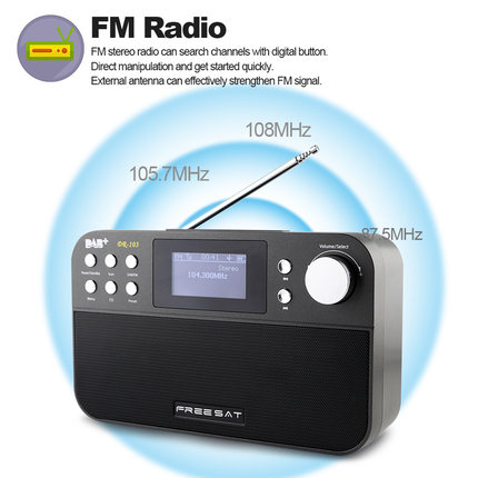 FREESAT DR-103便携式数字DAB + DAB FM收音机DAB RDS波段接收器立体声接收器,带2200mAh 18650电池